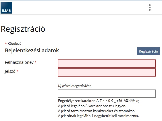 A regisztrációs oldalon válasszunk egy felhasználónevet, amely nem tartalmazhat szóközt,